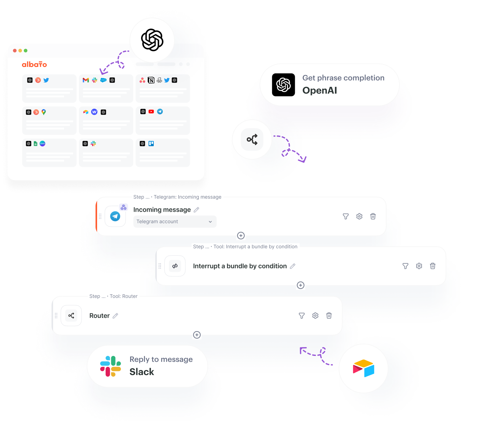 После оплаты у вас появится доступ к аккаунту Albato, в котором уже настроена автоматизация для Telegram и OpenAI.